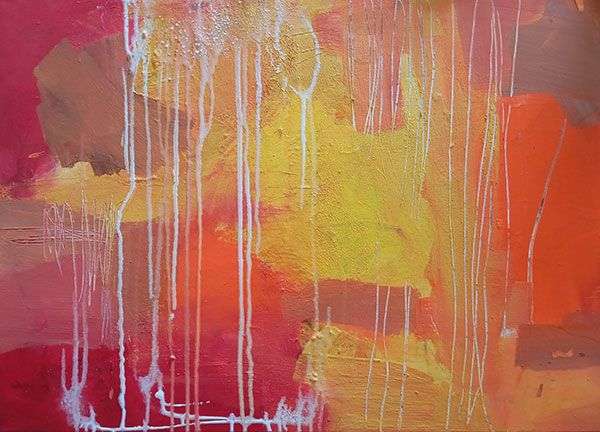 Im Malkurs werden künstlerisch spannende Akzente mit Hilfe von Kurkuma und Mischtechniken in Gelborange gesetzt. Es wird gepinselt, gespachtelt, gekritzelt, gespritzt und mehr.